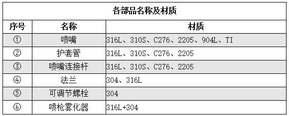 1.選材精良:抗高溫沖擊可達2000℃以上,抗熱變形、耐酸堿、耐磨損,使用壽命跟普通SNCR噴槍相比高達5倍以上,(材質可根據用戶需求定制)規格齊全。