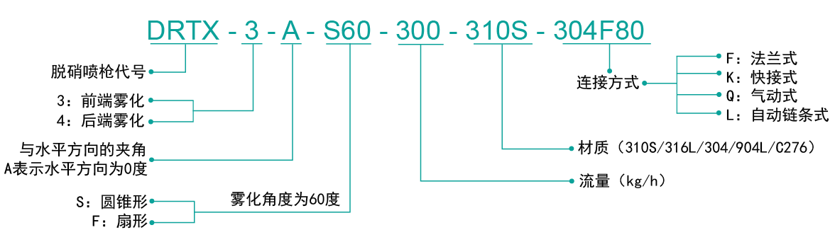 三、DRTX系列高效SNCR脫硝噴槍型號說明