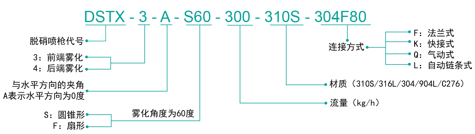 三、DSTX系列水泥廠專(zhuān)用脫硝噴槍型號(hào)說(shuō)明